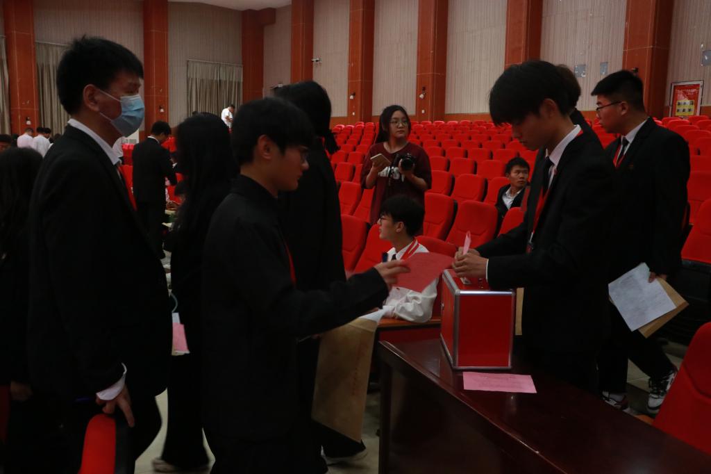 6月14日,金年会jinnianhuicom第四次学生代表大会在开元校区励德厅隆重召开。学生处处长、团委全体工作人员、各教学院(部)团总支书记及全校238名学生代表参加大会。大会分预备会议、开幕式、大会选举和闭幕式四个阶段。预备会议及开幕式由团委负责人张华珍主持,大会选举及闭幕式由团委副书记孙配显主持。