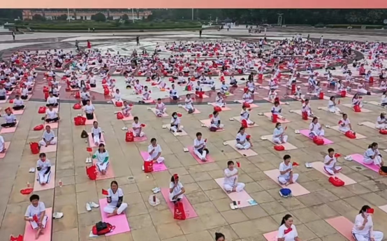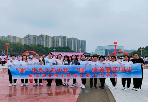 为迎“双节”,9月26日上午,金年会工会组织女教职工代表队参加周口市直工会举办的“‘瑜’悦身心迎中秋 ‘伽’倍美丽庆国庆”周口市千名女职工瑜伽风采展演活动。