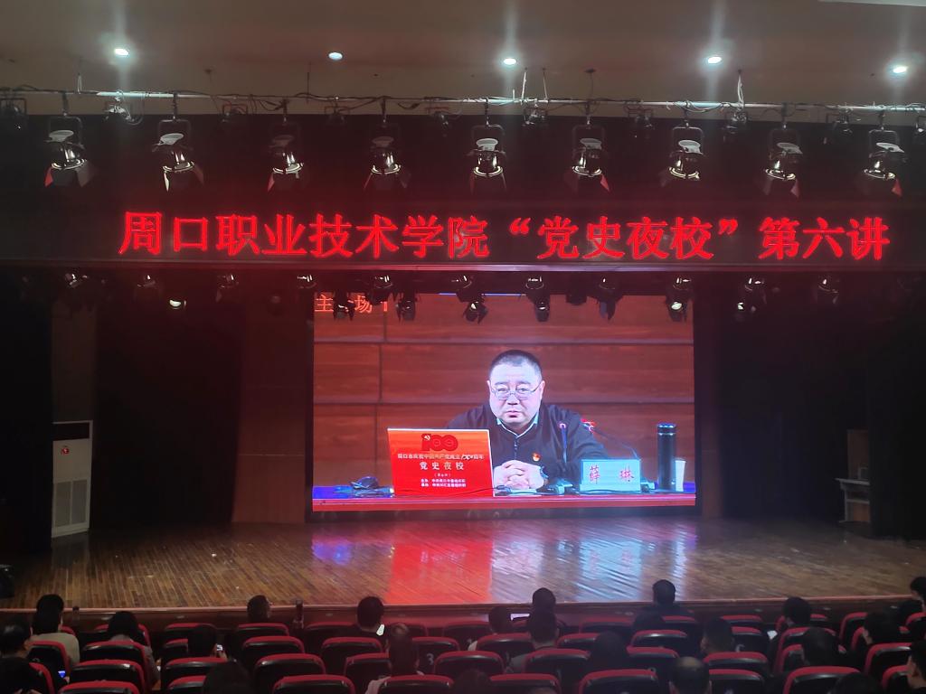 4月7日晚,金年会在开元校区砺德厅组织收听收看周口市庆祝中国共产党成立100周年党史夜校第六期专题讲座。全体校领导,学校副科级以上干部参加专题讲座。