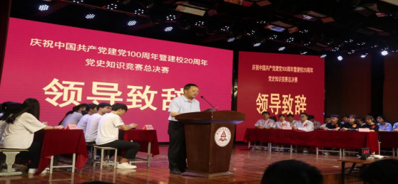 为庆祝中国共产党成立100周年暨建校20周年,6月12日下午,金年会jinnianhuicom在学前艺术演播厅举办了“永远跟党走 奋斗新征程”党史知识竞赛总决赛,校党委副书记赵振然、副校长李明臣及二级教学院部领导及思政部全体教师、学生代表200多人一起观看了现场比赛。2000余名师生同步收看现场直播。