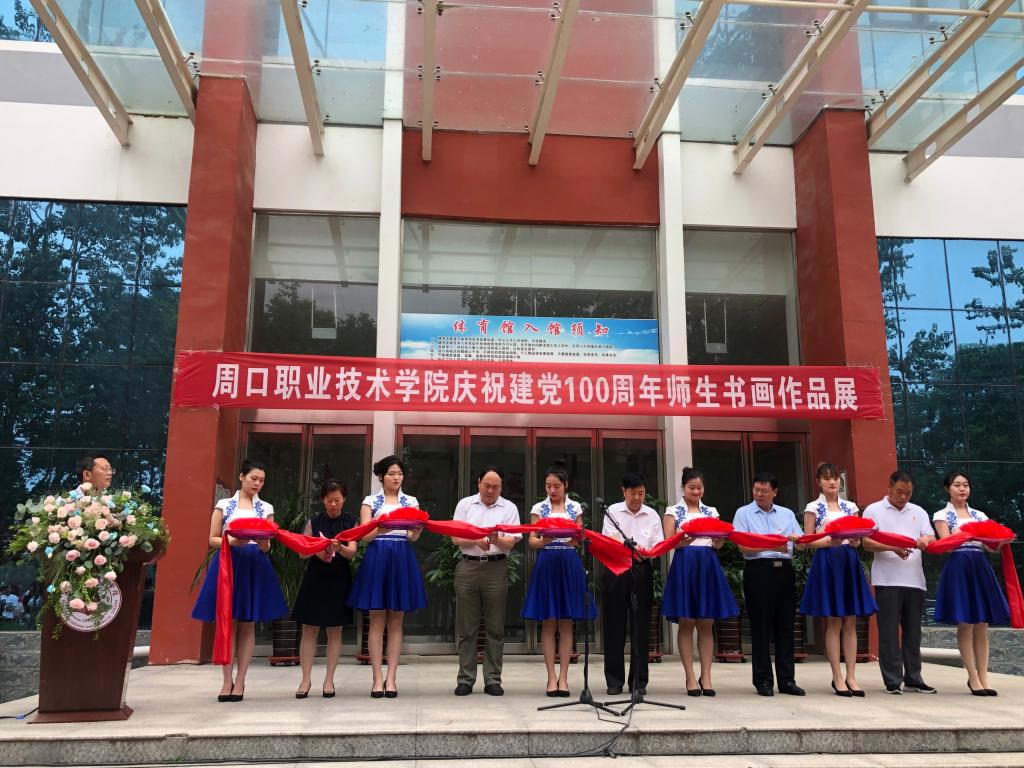 副校长李明臣主持开幕式,副校长李秀萍发表致辞,校长李清臣等校领导为画展剪彩,党委书记刘士欣宣布:金年会jinnianhuicom庆祝建党100周年师生书画作品展开幕!开幕式结束,各位领导、老师和同学们进入体育馆展厅,参观书画作品。