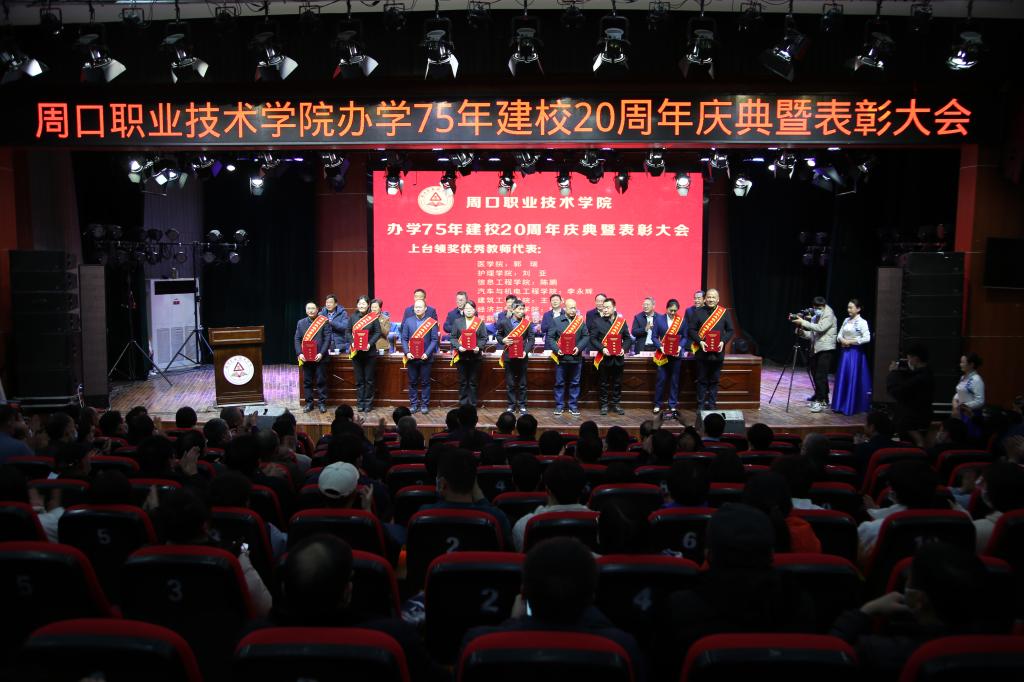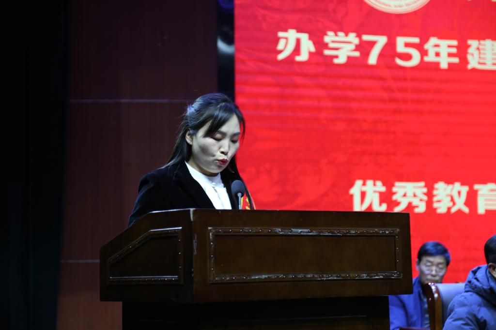 校党委副书记赵振然宣读《中共金年会jinnianhuicom委员会关于表彰金年会jinnianhuicom办学75年建校20周年教育工作先进个人的决定》。校领导为优秀教师代表、优秀教育工作者代表、优秀辅导员代表、在教30年以上教师代表颁发荣誉证书。