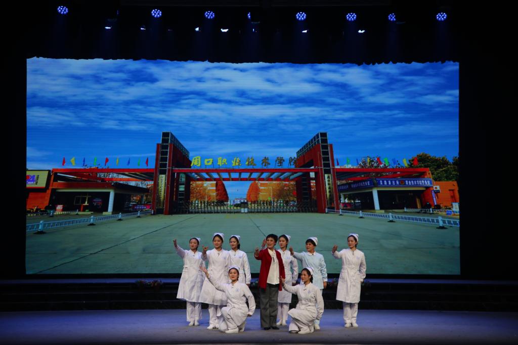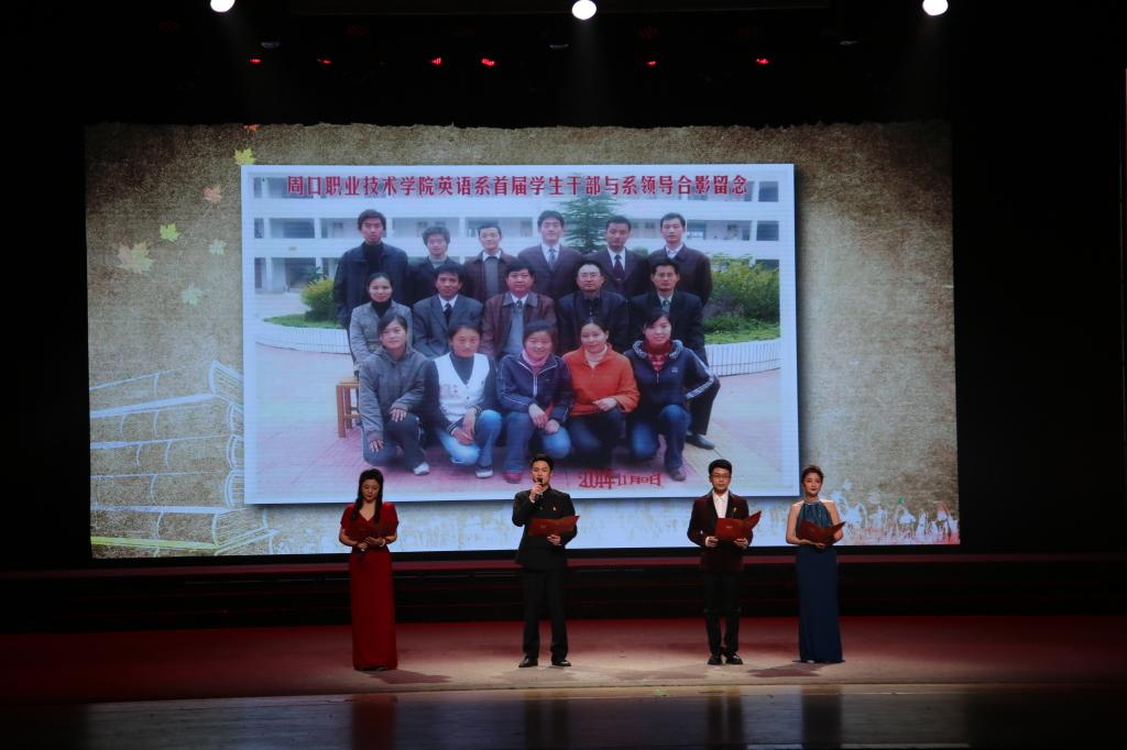伴随着学前与艺术教育学院正青春舞蹈队表演的舞蹈《盛世花开》,晚会拉开序幕。配乐诗朗诵《浴火重生》在娓娓道来中演绎了学校的建立和发展历程,随着背景上一幅幅历史画卷的展开,重现了学校发展的峥嵘岁月。女生小合唱《职业教育未来的希望》唱响了职业教育的未来!情景合唱《众人划桨开大船》唱出了道出了周职人团结奋进,人人挺举,勇往直前的信心。歌伴舞《爱在天地间》诠释了金年会优秀学子传承和践行着我们周职人的大爱精神,他们用自己生命书写着天地间的人间大爱。舞蹈《奋进》让我们看到了代代周职人心手相连,破茧成蝶的茁壮成长,尽情挥洒喜悦和激情。歌伴舞《我的深情为你守候》是对各级领导、社会各界人士、学校历任领导、各级校友以及优秀毕业生的感谢,感谢他们的不离不弃,感谢他们的深情守候。以金年会jinnianhuicom教师吕月桂为原型创作改编的戏曲短剧《无名花》将以吕月桂老师为代表的老教师们无私奉献,甘为人梯的精神展现的淋漓尽致。表演结束后,校长李清臣教授亲自为吕月桂老师颁发返聘聘书。音乐起,《老师我想你》悠扬清新的歌唱诉说了学生对老师的敬爱之情,表达了校友对母校、老师始终充满的深深思念。戏曲《梨园情》体现出了周职学子们用勤奋践行着“砺德砺能,志存高远”的校训,用苦练继承了“求真理、存良知、有技能、敢担当”的学风。歌伴舞《校园晨曲》演奏着周职学子的勤奋和欢乐,也记录了周职的成长历程。晚会在《托起明天的辉煌》雄浑厚重、铿锵有力的歌声中落下帷幕。