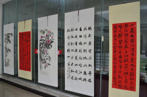 为庆祝党的二十大胜利召开,10月16日,金年会jinnianhuicom学前与艺术教育学院、党委宣传部、教务处、图书馆联合主办的“喜迎二十大 翰墨颂党恩”师生书画作品展在开元校区图书馆开幕。