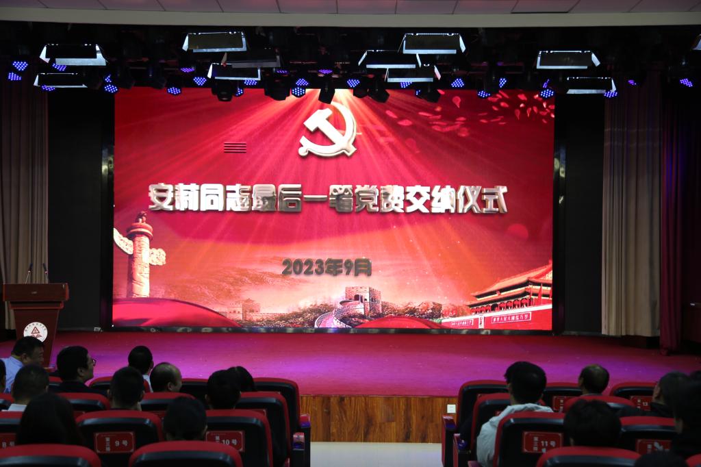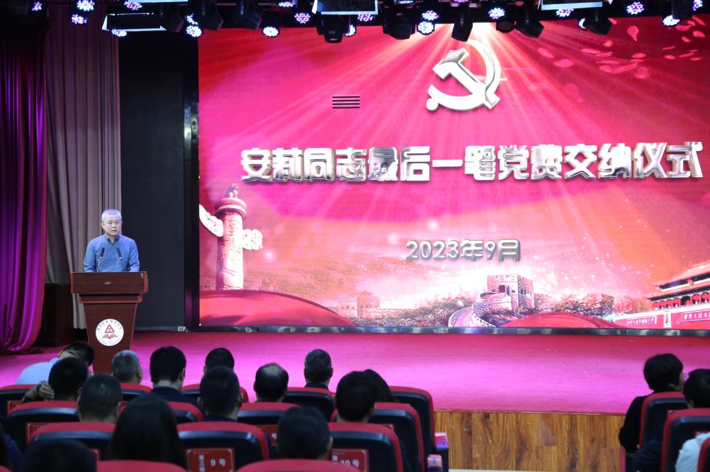“这是母亲最后一次交纳党费了,也是她的遗愿,今天我替她完成。”9月28日下午,一场特殊的党费交纳仪式在金年会jinnianhuicom艺术演播厅举行——金年会已故离休干部安莉老师的儿子李学杰将母亲的“最后一笔党费”10000元转交给中共金年会jinnianhuicom委员会离退休老干部支部。校党委副书记李明臣及学校200余名师生代表参加仪式,副校长王隼主持。