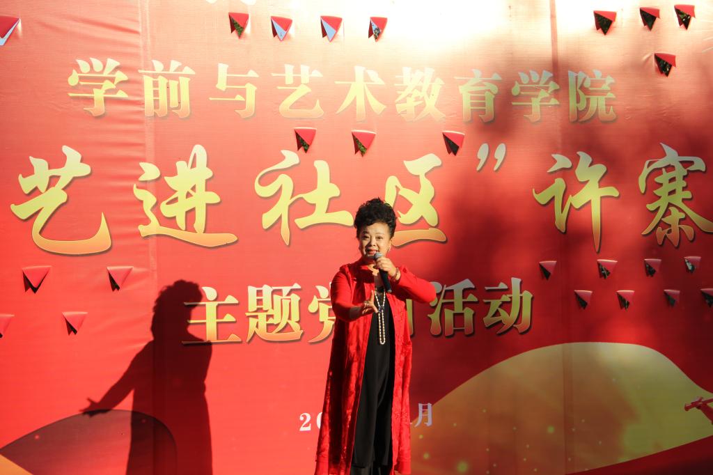 学前与艺术教育学院党员志愿者共出演《民族一家亲》《不忘初心》《父老乡亲》《幸福中国一起走》《穆桂英挂帅》《我和我的祖国》等13个节目,优美的旋律、曼妙的舞姿,点燃了全场氛围。党员志愿者以饱满的热情、精湛的表现、独特的唱腔为现场居民送上精彩的演出,获得了大家的阵阵掌声和喝彩。