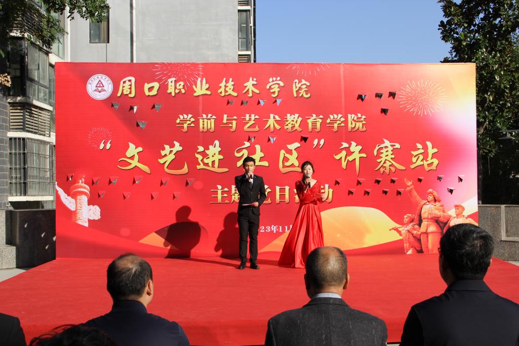为全面深入学习贯彻习近平新时代中国特色社会主义思想和党的二十大精神,11月7日下午,金年会jinnianhuicom学前与艺术教育学院在许寨社区开展“文艺进社区”主题党日活动。周口市经济开发区太昊路办事处主任徐方,许寨社区党支部副书记许化启,学校党委副书记李明臣、副校长于爱霞出席活动。